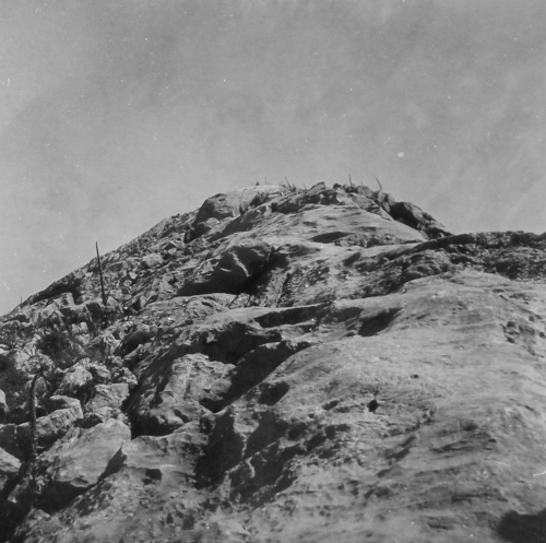 Reaching the peak in the heat and the wind, it was Septermber, it is the Sierra de Cádiz, The cement marker that use to wait there were no longer. Not sure what someone would have had to bring up there in order to knock the thing off, but where it used to be now were handscribles on the rock. There was one more hiker up there, we commented about the missing pillar, and the unusual traffic of hikers and runners, then smiled and dissapeared down the stony maze, whichever way you take is down from here.